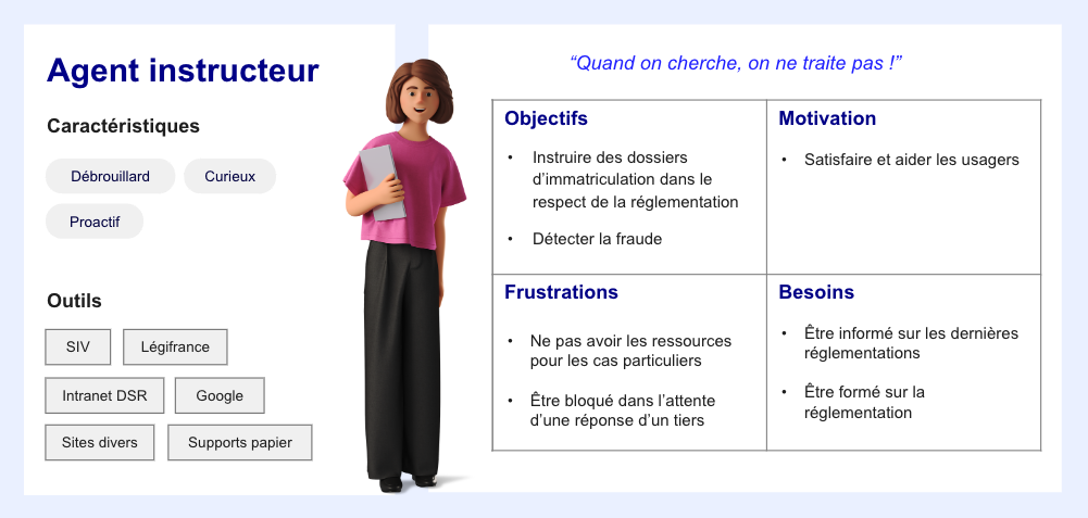 <table data-header-hidden><thead><tr><th width="207"></th><th></th></tr></thead><tbody><tr><td><mark style="background-color:orange;">Quoi</mark></td><td><strong>Persona présumé</strong> : supposition sur ceux qui utilisent ou vont utiliser notre produit et les raisons qui les motivent. Synthèse de plusieurs profils utilisateurs</td></tr><tr><td><mark style="background-color:orange;">Qui</mark></td><td><strong>Intrapreneur + Coach</strong> + UX</td></tr><tr><td><mark style="background-color:orange;">Comment</mark></td><td>Atelier de 2h</td></tr><tr><td><mark style="background-color:orange;">Pré-requis</mark></td><td><ul><li>Avoir défini des catégories d’utilisateurs cibles avant les entretiens et observations</li><li>Revue de l’existant</li><li>Si existantes : données brutes issues des entretiens et observations avec les utilisateurs</li></ul></td></tr><tr><td><mark style="background-color:orange;">Méthodes associées</mark></td><td><ul><li><a href="../emettre-des-hypotheses/hypotheses-utilisateurs">Hypothèses sur les utilisateurs</a></li><li><a href="carte-dempathie">Carte d'empathie</a></li><li>Synthèse des connaissances (existant)</li></ul></td></tr></tbody></table>